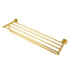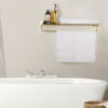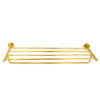 Sometimes it’s the small things that pull a room together. That’s why we’ve designed a hardware collection with modern silhouettes, clean lines and a touch of tradition to give your bathroom that perfect finishing touch. Rounded corners and smoothed edges soften the minimalist design of the towel rack made of brushed brass. The three-rod design lets you hang multiple towels, while the rack’s mix of square and rectangular shapes gives it a geo-forward look that’s bold and contemporary. The towel rack is ready to mount on the wall with included hardware.